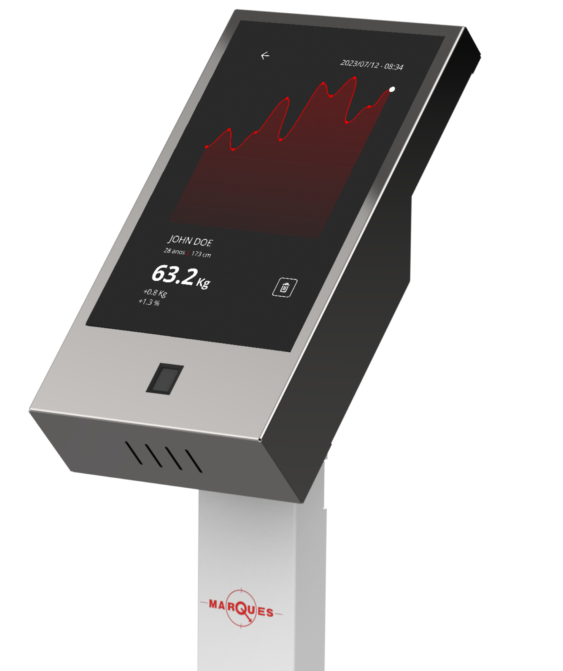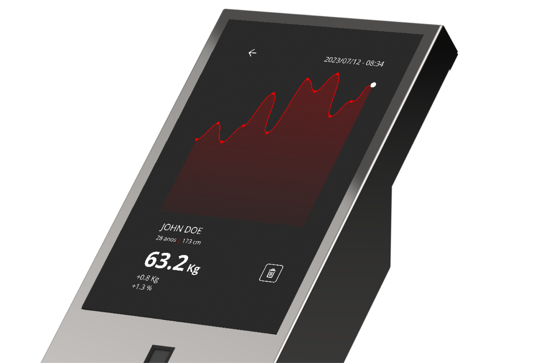 Cada pesaje lo realiza el propio jugador, de forma autónoma, en solo unos segundos. Los datos quedan registrados con fecha, hora y variación (en kg y %).